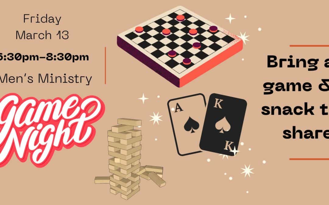 Men’s Ministry Game Night | March 13 Join us for games and fellowship! Bring a your favorite game (if you have one), and a snack to share.